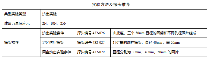 调用挤压实验程序,应用38.1mm柱形探头,以样品平台为位移零点,挤压距离视样品高度确定,测试完成后利用TL-Pro软件自动计算分析实验结果。